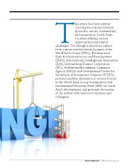 his article has been written covering the relevant internal dynamics, trends, relationships, and scenarios in South Asian Counties offering various Topportunities and related challenges. The thoughts shared are carried from various internal research papers of the World Bank Group (WBG), (International Bank for Reconstruction and Development (IBRD), International Development Association (IDA), International Finance Corporation (IFC), Multilateral Investment Guarantee Agency (MIGA) and International Centre for Settlement of Investment Disputes (ICSID)), personal analysis, discussion at various forums at the World Bank Group Headquarters and International Monetary Fund (IMF) on South Asia’s development; and personal discussions of the author with various economists and colleagues. January - March 2016 The Pakistan Accountant 7