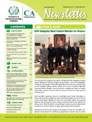 Newsletter www.icap.org.pk Volume 38 Issue 12 | December 2015 Governance, Transparency and Service to Members and Students contents meets & events meets & events ICAP Delegates Meet Federal Minister for Finance 2 ICAP President and VP Attend IFAC Council Meeting in Singapore Certificate Distribution Ceremony for 4 Newly Qualified CAs Seventh Annual Meeting of AOSSG at 6 Seoul, Korea SRC Seminar on Changes in the Auditor’s 7 Report – A Fundamental Shift Annual Dinner for ICAP Members and 8 Students at Jeddah Canada Chapter Event on Islamic Finance 9 Second CPD Event of KSA Chapter in 10 Riyadh Eighteenth Directors’ Training Program in Karachi 11 member news 14 feedback 15 technical update IASB Proposes Amendments to Address Concerns about Different Effective Dates 16 of IFRS 9 and New Insurance Contracts From L: Council members Rashid Ibrahim, Abdullah Yusuf, finance minister Ishaq Dar, president Standard ICAP Hafiz Mohammad Yousaf and Council member Naeem Akhtar Sheikh. IASB Proposals for Amendments under The Institute of Chartered Accountants of Pakistan (ICAP) delegates met the its Annual Improvements Project 17 (cycle 2014-2016) federal minister for finance Ishaq Dar on December 1, 2015. The delegation comprised of president ICAP Hafiz Mohammad Yousaf, past president and IASB Proposes Amendments to IAS 40 on Transfers of Investment Property Council member Naeem Akhtar Sheikh and Council members Abdullah IFRS Foundation Releases Training 18 Yusuf and Rashid Ibrahim. Special assistant to federal minister for finance Material for IFRS 9 and IFRS 15 Tariq Pasha was also present at the meeting. The finance minister greeted Materiality in Integrated Reporting the ICAP team. hr news ICAP president apprised Ishaq Dar regarding South Asian Federation of ICAP Hajj Scheme & President Self-Funded 19 Accountants (SAFA) Conference being organised by ICAP in January 2016 in Hajj Balloting for ICAP Employees Lahore when Naeem Sheikh is to take over as president SAFA. He requested student section 21 Dar to be the chief guest on the closing ceremony to be held on January 30 CA Trainee Induction Fair 2015 during which Best Presented Annual Report Awards would be distributed to winners from SAFA region. He graciously accepted the invitation. Career Counselling Sessions 22 Orientation Sessions 2015 24 Hafiz Muhammad Yousaf requested the federal minister for allocation of a Examination News 27 plot for construction of a building at government control rates in Lahore Chartered Accountants Avenue, Clifton, Karachi-75600 (Pakistan) UAN: 111-000-422 PABX: 99251636-39 Fax: 99251626 Email: [email protected]