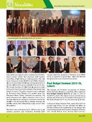 Newsletter The Institute of Chartered Accountants of Pakistan Group photograph at the Post Budget Seminar 2015-16, Karachi FCA partner A.F. Ferguson & Co. Chartered Accountants, Yacoob Suttar, FCA, presented a memento to Dr. Miftah Naeem Akhter Sheikh, FCA chairman ICAP Taxation Ismail as a gesture of appreciation. Abdul Rab thanked Committee, Khalid Mansoor chief executive, The Hub the participants and invited them for dinner. Power Company Limited (HUBCO) and Iftikhar Allawala, director National Bank of Pakistan and Speciality Printers Post Budget Seminar 2015-16, and Dr. Salman Shah, former caretaker finance minister. Lahore The session chairman, Dr. Miftah Ismail, special assistant to the prime minister/chairman Board of Investment also The Institute of Chartered Accountants of Pakistan joined the panel. The panel discussion was moderated (ICAP) Northern Regional Committee (NRC) organised by Mehmood Abdul Razzak, FCA, partner Baker Tilly Post Budget Seminar 2015-16 on June 13, 2015 at Mehmood Idress Qamar Chartered Accountants. The Royal Palm Lahore. The objective of the seminar was to panel discussion was highly interactive with a lot of discuss and deliberate on the possible consequences of pressing matters directed by the moderator towards the the Federal Budget 2015-16 on the economy of Pakistan. panelists. The discussions led to debates amongst the panelists which were followed by a Q&A session from Chief guest Waqar Masood Khan appreciated ICAP for the audience. holding such events. He also narrated the efforts of Ministry of Finance in preparation of the budget and Mementos were distributed by Dr. Miftah Ismail to the improvements made over the years. The guests of honour speakers, panelists and moderator. President ICAP were Shahid Hussain Asad, member Inland Revenue 2 July 2015