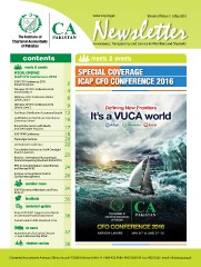 Newsletter www.icap.org.pk Volume 39 Issue 5 | May 2016 Governance, Transparency and Service to Members and Students contents meets & events meets & events SPECIAL COVERAGE SPECIAL COVERAGE ICAP CFO Conference 2016 ICAP CFO Conference 2016 2 ICAP CFO CONFERENCE 2016 Karachi & Lahore Glimpses of CFO Conference 2016 4 Karachi, May 31 Glimpses of Pre Conference Dinner 8 Lahore, June 1 Glimpses of CFO Conference 2016 9 Lahore, June 2 Deening New Frontiers Certificate Distribution Ceremony Karachi 12 Gold Medal and Certificate Distribution 16 Ceremony Lahore Roundtable Session with Media 17 on ICAP Budget Proposal ICAP PFM Conference 18 Pre Budget Seminar 20 CA Students’ Conference 22 Consultative Sessions on Audit Oversight Board in Pakistan 23 Revision ‐ International Accounting & Financial Reporting Standards (IAS & IFRS) IFRS for Small & Medium Sized Entities 24 and Revised AFRS Seminar on Negotiation Skills & 26 Conflict Management member news 34 ICAP Directory of Members and Firms 2016-17 feedback 35 technical update Revised ISA 810 ‘Engagement to Report on Summary Financial Statements’ 36 Pocket Guide to IFRS Standards 2016 hr news CFO CONFERENCE 2016 Appointment of Executive Director 37 – Legal & Membership Affairs student section 38 Chartered Accountants Avenue, Clifton, Karachi-75600 (Pakistan) UAN: 111-000-422 PABX: 99251636-39 Fax: 99251626 Email: [email protected]